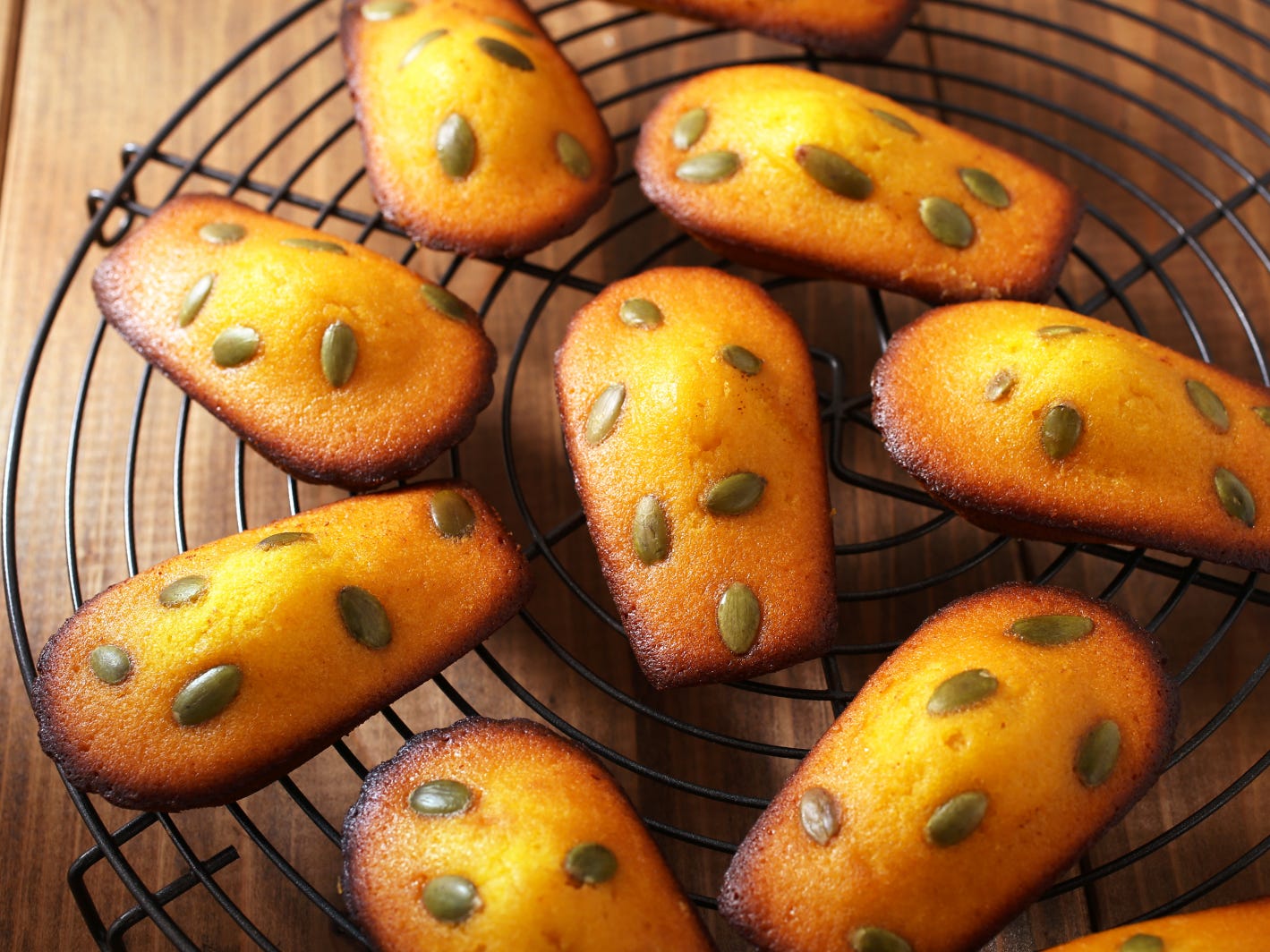 【店頭限定】「かぼちゃのマドレーヌ」1個270円/販売期間:2023年10月18日(水)~10月31日(火) 人気の焼き立てのマドレーヌにも、秋の味覚・かぼちゃを使ったハロウィン限定が登場。こっくりとした濃厚なかぼちゃの甘みを、風味豊かなマドレーヌ生地に閉じ込めて焼き上げています。ほのかなレモンの香りがアクセントに!