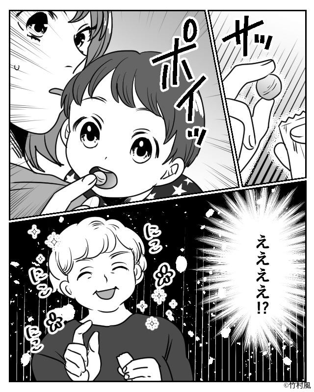 まだ1歳半の子どもに飴玉をあげたことがなかった主人公は驚きます。
