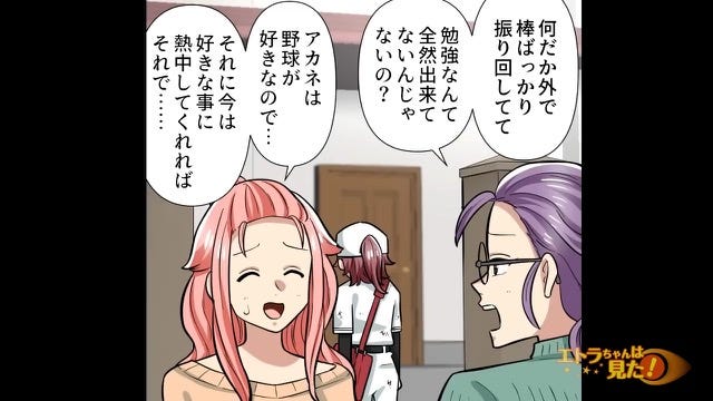 主人公が野球をやっていることで勉強ができないと決めつける学歴自慢ママ。