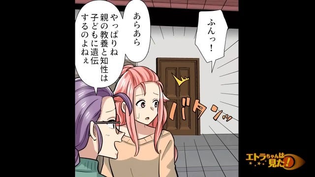 マウントを取るために子どもをダシにしているのを聞いた主人公は勢いよく扉を閉めます。