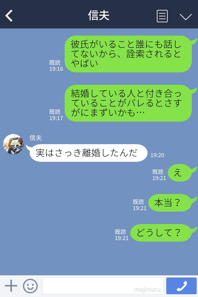 職場の人にバレるとまずいかもと懸念する主人公に「実はさっき離婚したんだ」と告白する彼。