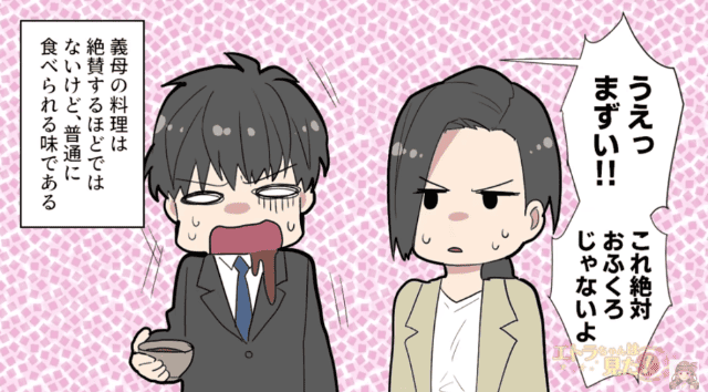 怪しい料理に口をつけた夫は…母の味でないことを確認したのでした。