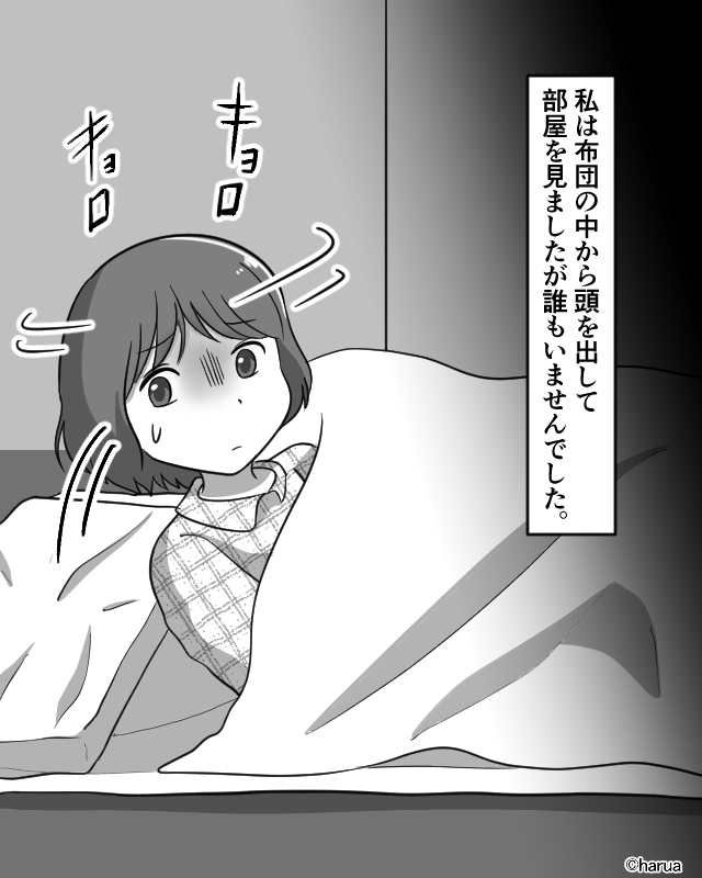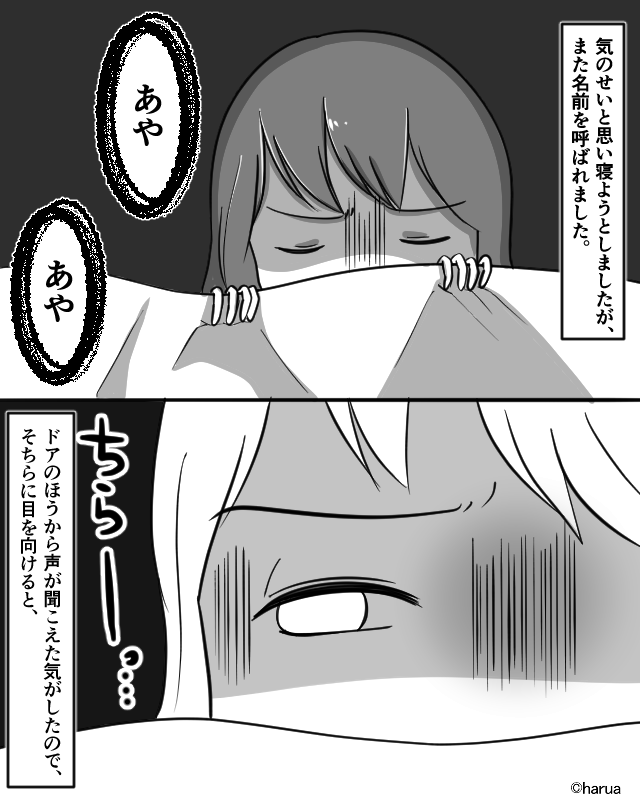 - 【第2話】ドアの近くには、こちらに背を向けて立つ【謎の人影】が…⇒驚いて声を上げると…!!