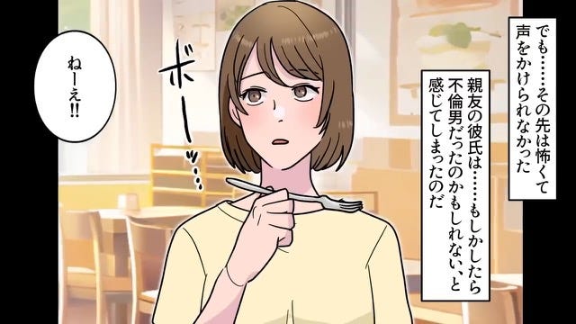 親友の彼氏を偶然見かけた主人公。