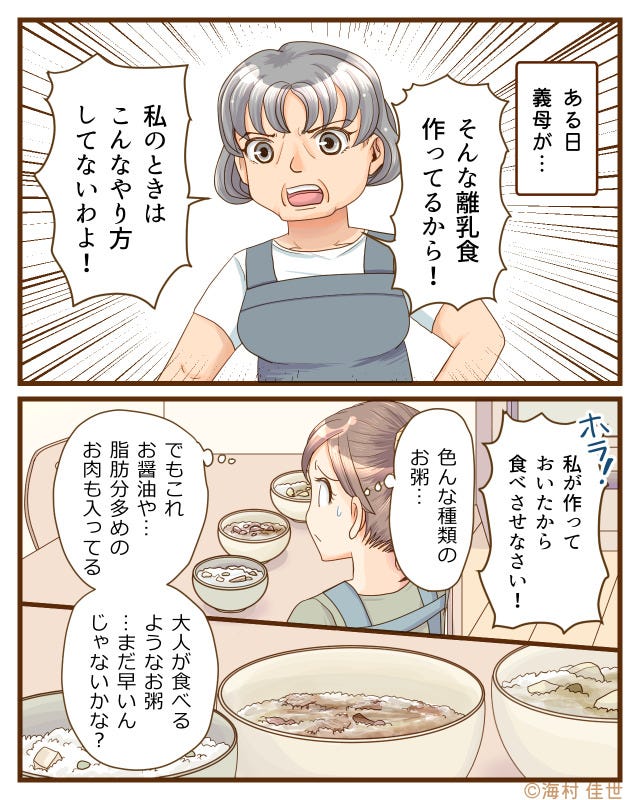 離乳食をなかなか食べてくれない子どもを見て、大人が食べるような離乳食を作った義母。
