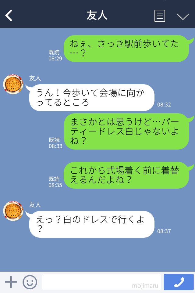 - ▶『まさかその服で!?』結婚式に白の服を着てきた友人⇒指摘すると【身勝手な主張】を始める!?