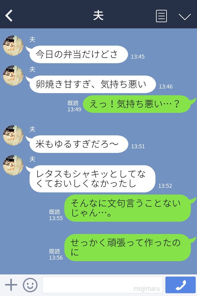 お弁当に文句ばかり言う夫に激怒してしまった主人公。