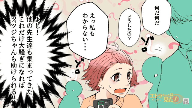 カリンはツツジを助けようと、証拠写真を撮りました。