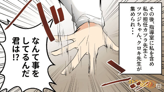 内緒でカメラを持ってきて遊んでいたとき、先生と友人のツツジがふたりきりで指導室へ入っていくのを見て…。