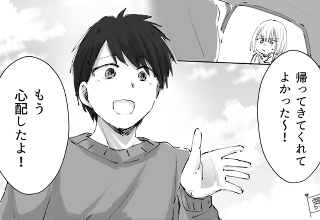 - ▶夫「もう心配したよ!」→「…は?」罪悪感ゼロ…?なぜか笑顔を見せる夫⇒家に早く入るように促されて…玄関をみて驚愕!?