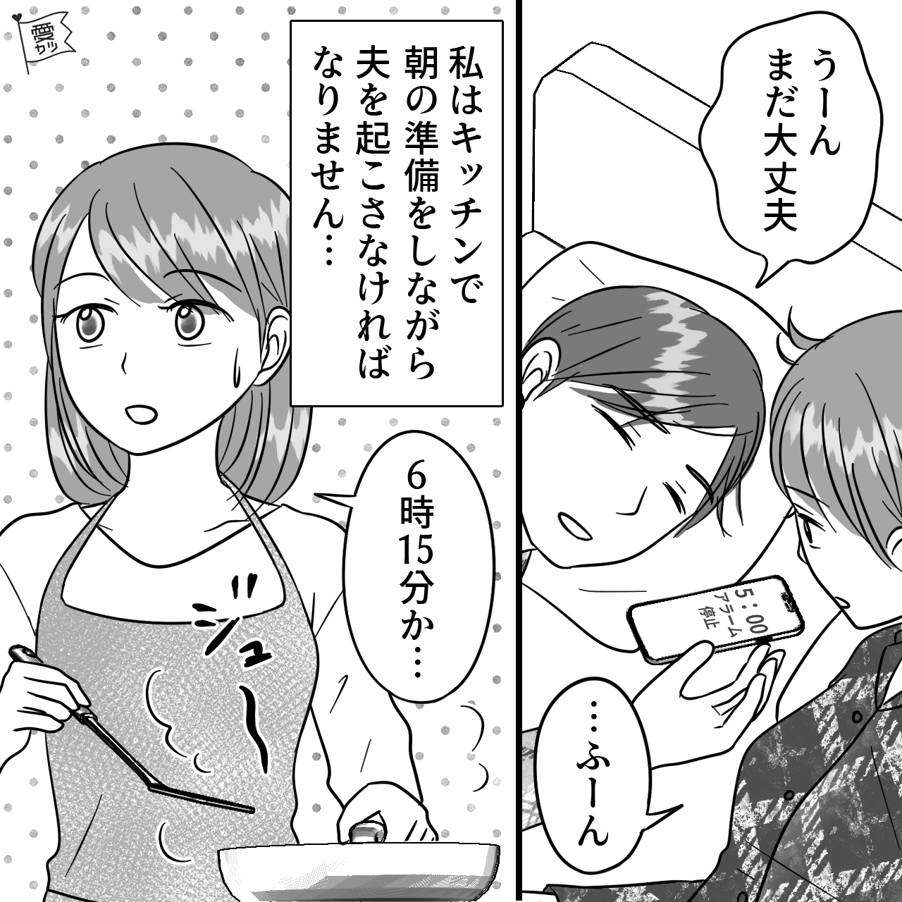 - 【第2話】「後5分で出なくちゃいけないのに…最悪」早おきが苦手な夫が逆ギレ!思わず無視してしまうと…⇒夫が【まさかの行動】に!?