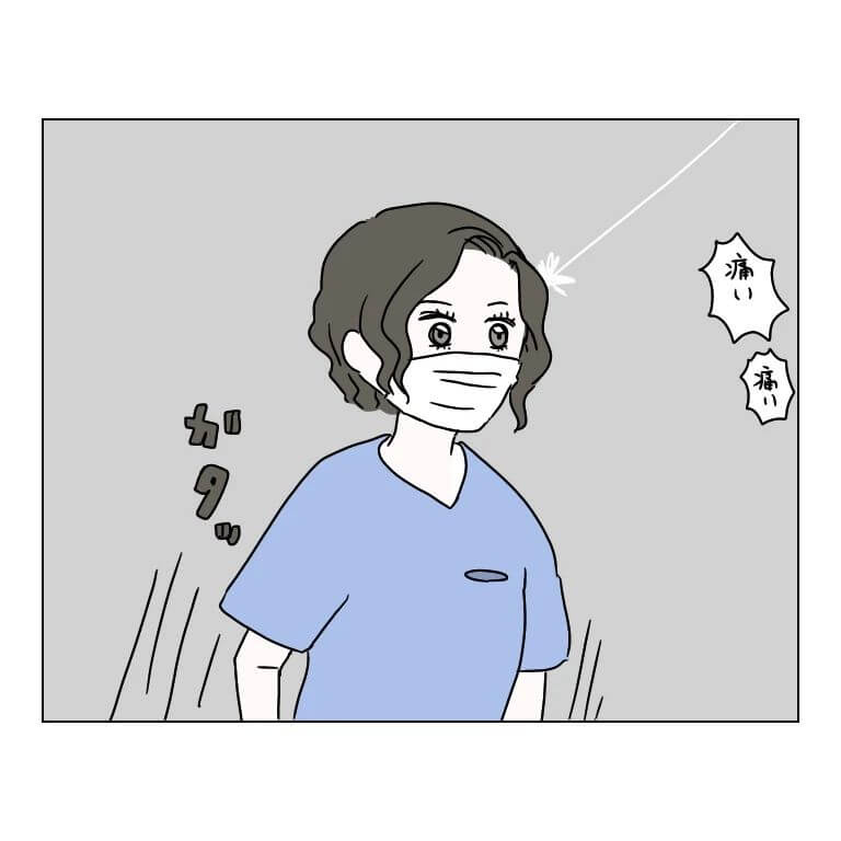 長く息を吐き、痛みを逃がそうとする主人公ですが、痛みはまったく引かず…。