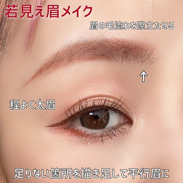 さらに眉頭は逆立てるように眉マスカラで仕上げると、眉の毛もツヤっぽくより若々しく見せることができるので、ぜひ試してみてください。