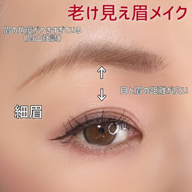 老け見え3大ポイントは「細眉」「角度がつきすぎている」「目との距離が離れている」です。