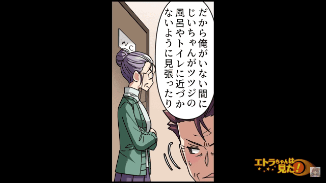 義祖父から風呂を覗かれたこともあったため、主人公を守るために浴室前に立っていたのです。