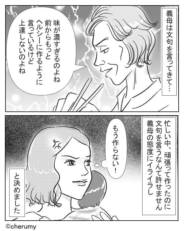 忙しい中作った食事に文句を言ってくる義母。