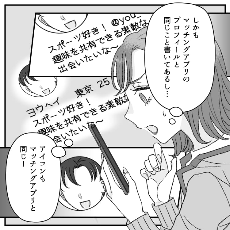 ある日マッチングアプリで出会った男性・ヨウヘイと、連絡を取るようになるのですが……?