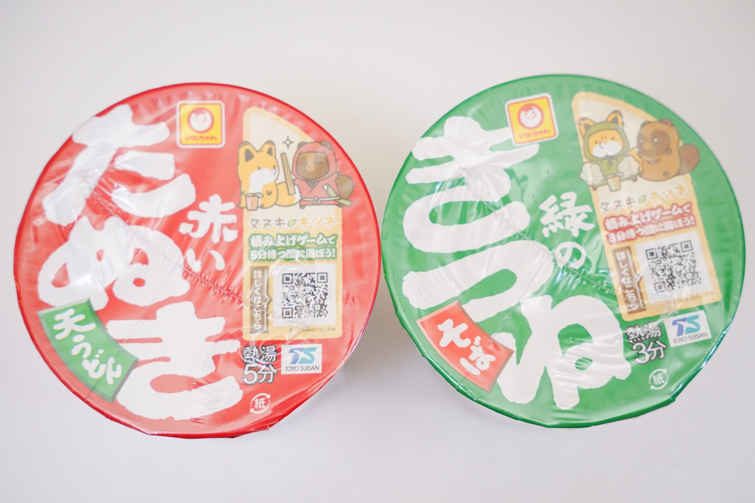 これらは17日より発売された『マルちゃん 縦型ビッグ 赤いたぬき天うどん』『マルちゃん 縦型ビッグ 緑のきつねそば』(各238円)という商品。過去にも何度か発売されており、根強い人気商品のようだ。