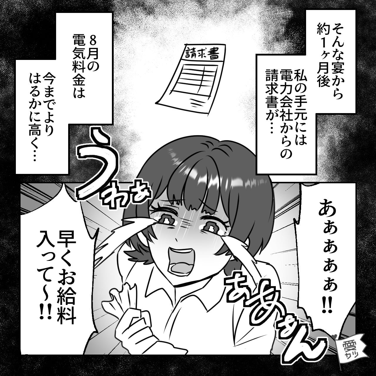 エアコンをつけたまま寝落ちしていた結果、電気料金が今までよりも高くなってしまった主人公。