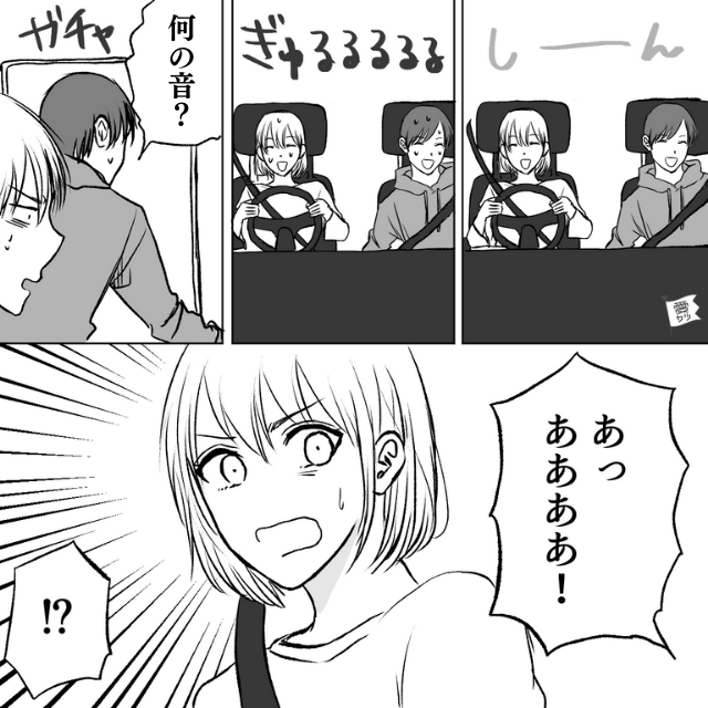 - 【漫画】彼氏「…何の音?」エンジンをかけた瞬間、車から異音が!?→“助手席の彼”が外を見ると…「ああああ!」思いもよらない事態にあたふた…