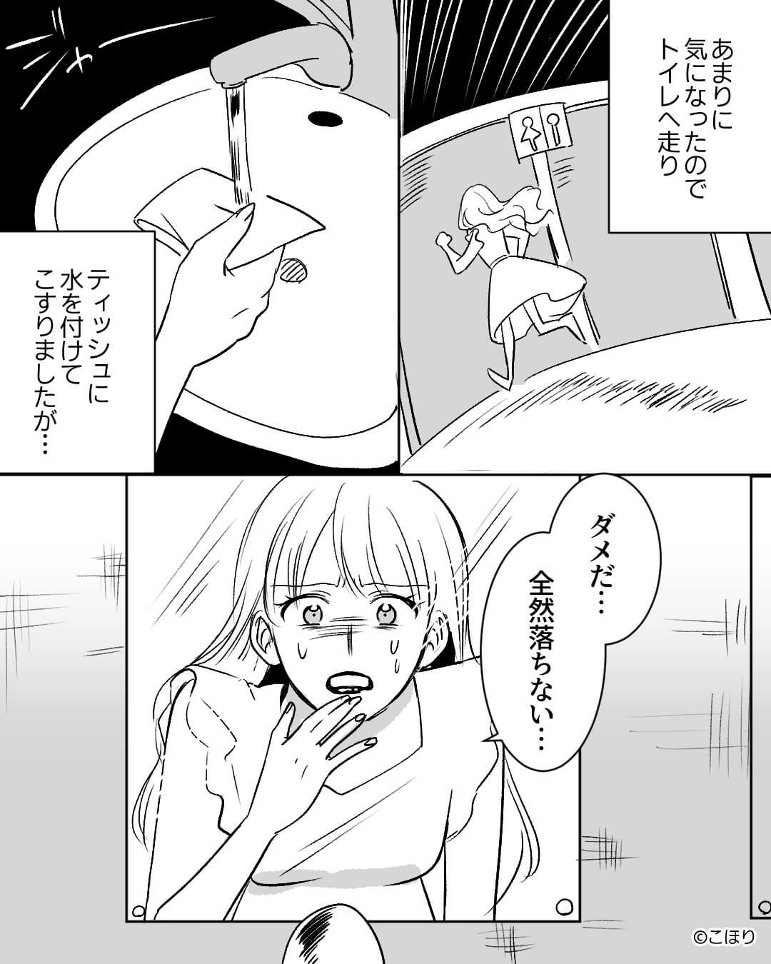 ティントの発色が気になり、トイレで落とそうとした主人公。