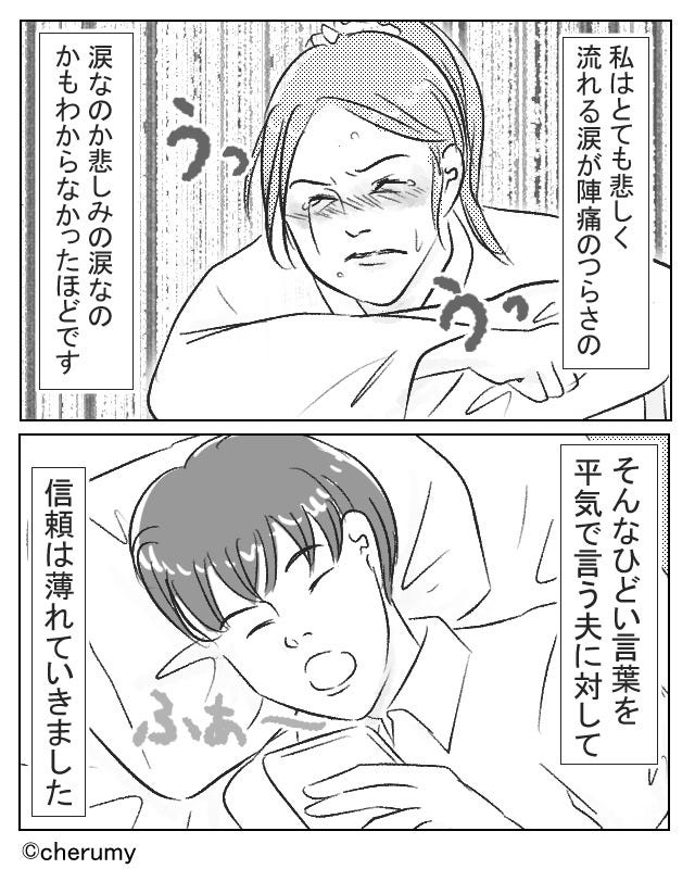 陣痛で苦しむ妻に冷たい夫…。