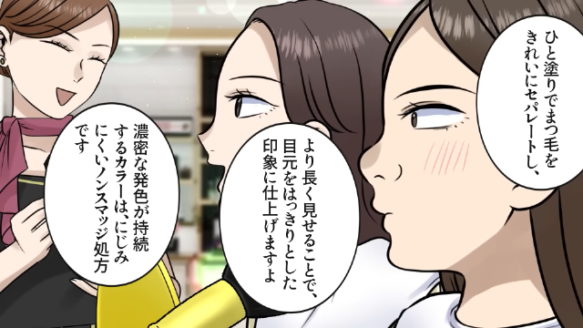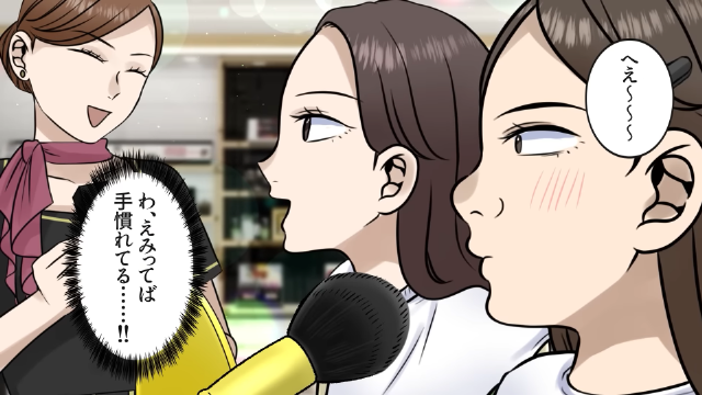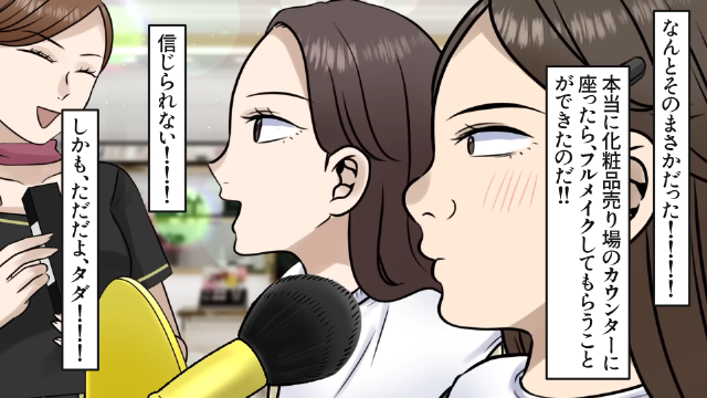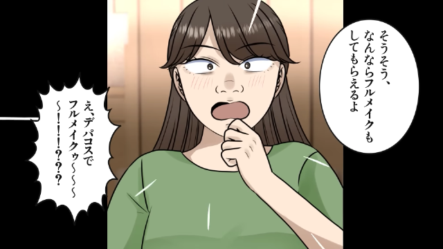 主人公は人生で初めて、百貨店の化粧品カウンターでフルメイクをしてもらうことに。