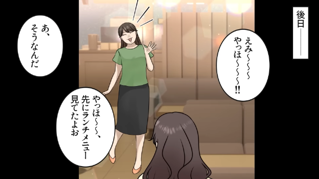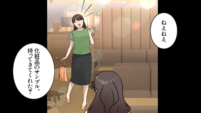 友人と会う日、高価な化粧品のサンプルがもらえると期待していた主人公。