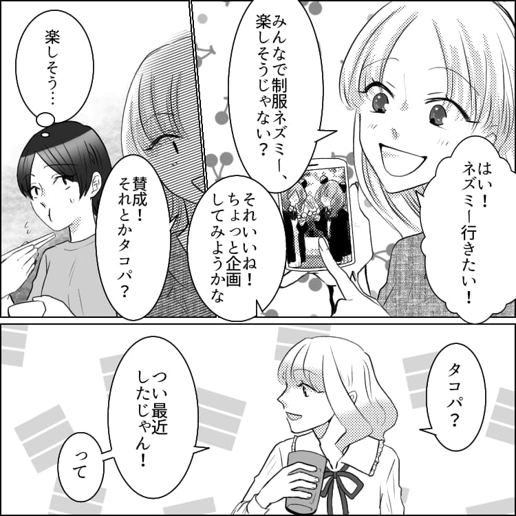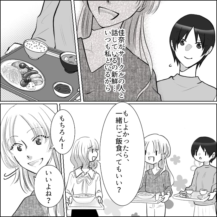 ある日、佳奈のサークルの友だちと3人でご飯を食べることに。