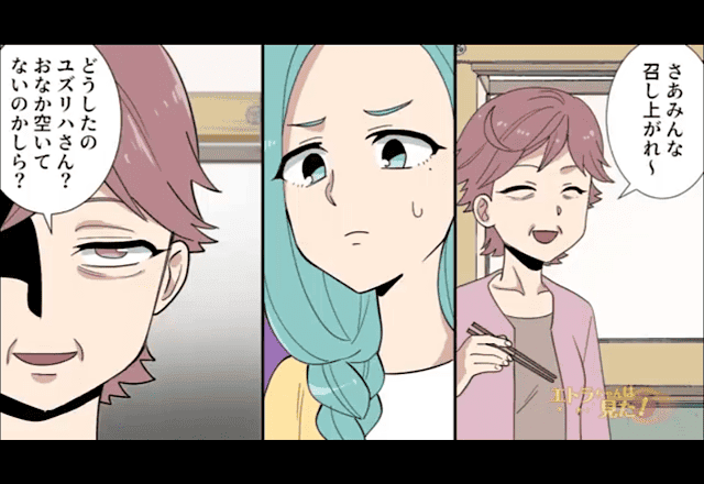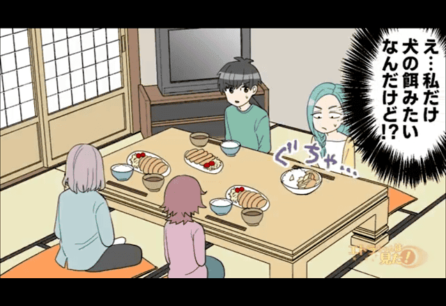 ユズリハのとんかつだけ犬のエサみたいな盛り付けにして「召し上がれ」と言う姑。