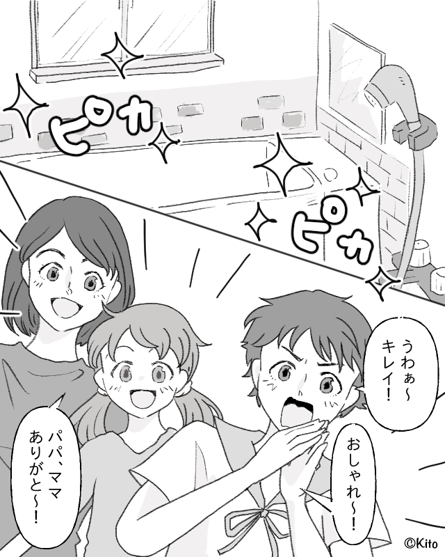 大規模なリフォームをし、お風呂が豪華になってはしゃいでいた主人公たち。