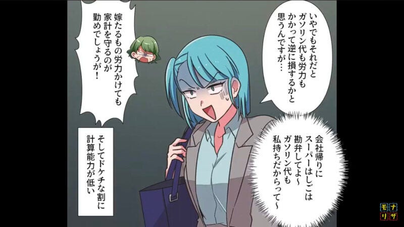 仕事帰りに主人公がスーパーで食材を買ってくると、義母は「ほかのスーパー回って見切り品をチェックしろ」と言ってきます。