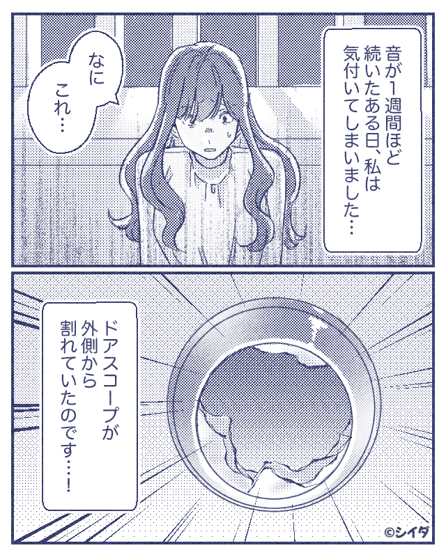 1週間なり続けていた音は、ドアスコープを壊す音でした。