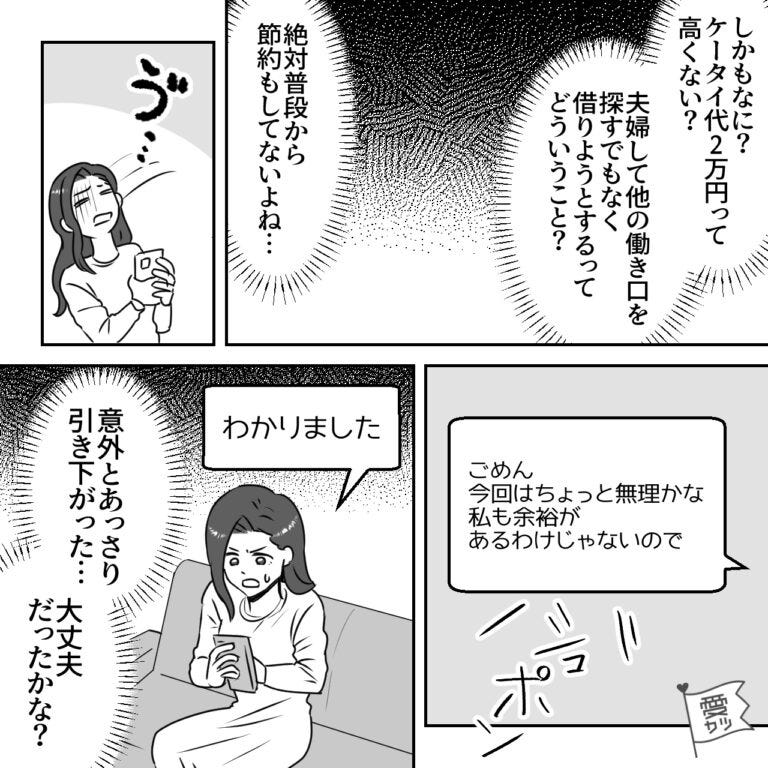 「二度としないって言ったのに」と呆れ、貸さないことにした主人公。