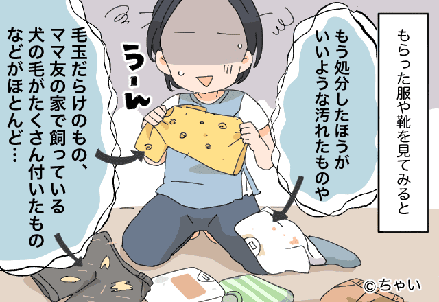 主人公は近所に住むママ友から「着ないからあげる」と、よく服や靴をもらっていました。