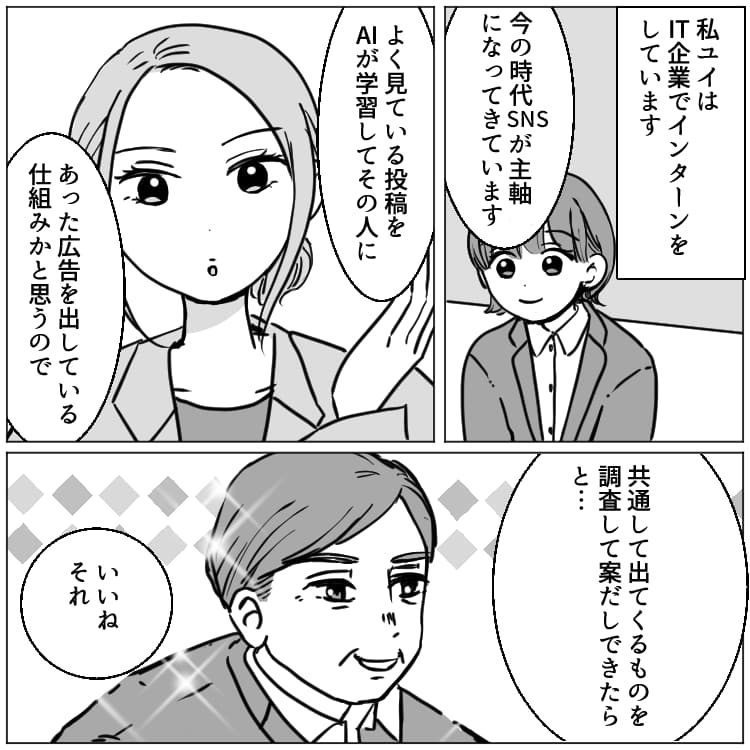 ある日のミーティングで、SNSに出てくる広告について話しあうことになり……?