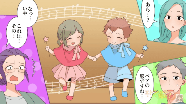 幼稚園の発表会当日、ボスママの娘が主人公の娘と同じ衣装を着ていました。