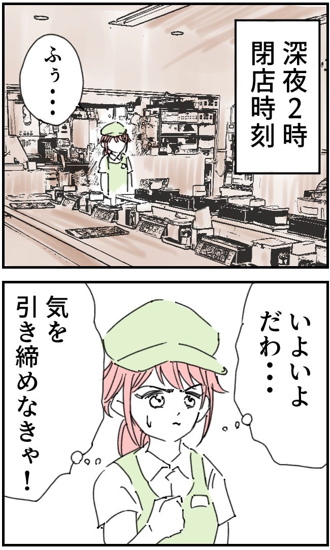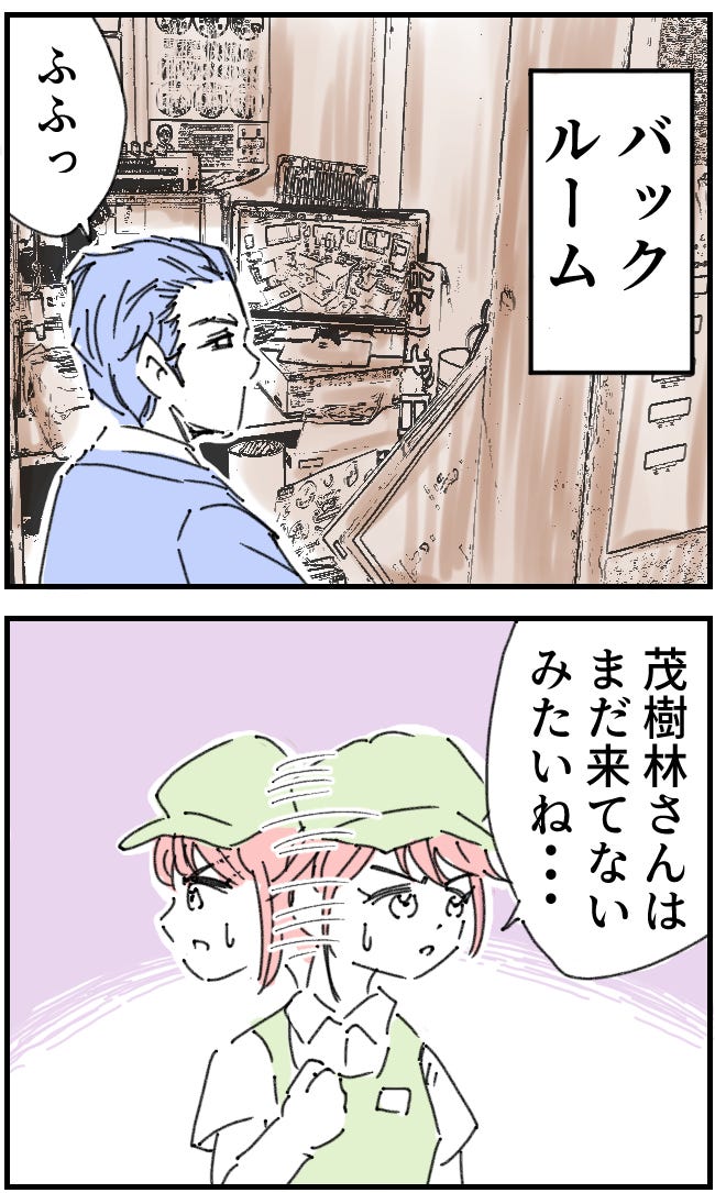 誰もいない店内に1人待機する主人公でしたが、バックルームにはマネージャーがいるので落ち着いているようです。