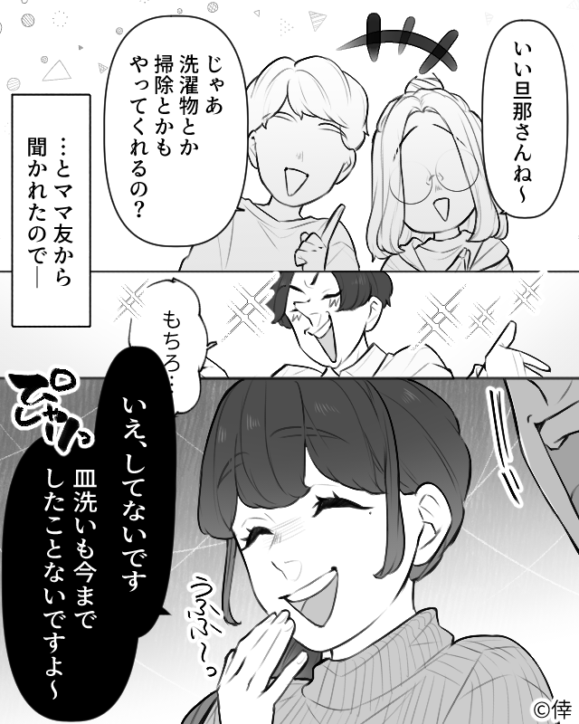 - ▶【漫画】妻「皿洗いもしたことないですよ~」夫「…は?!」→次の瞬間、夫大激怒するも…ママ友たちはドン引き!?
