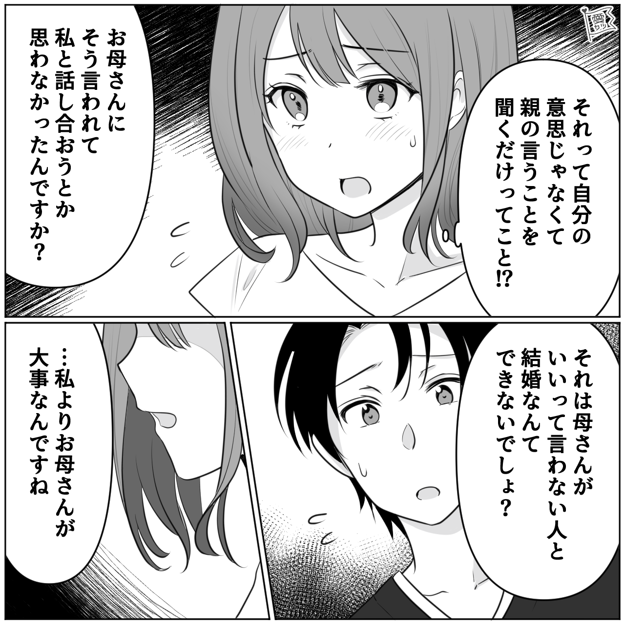 母の意見を最優先にする彼に、主人公は幻滅してしまった様子。