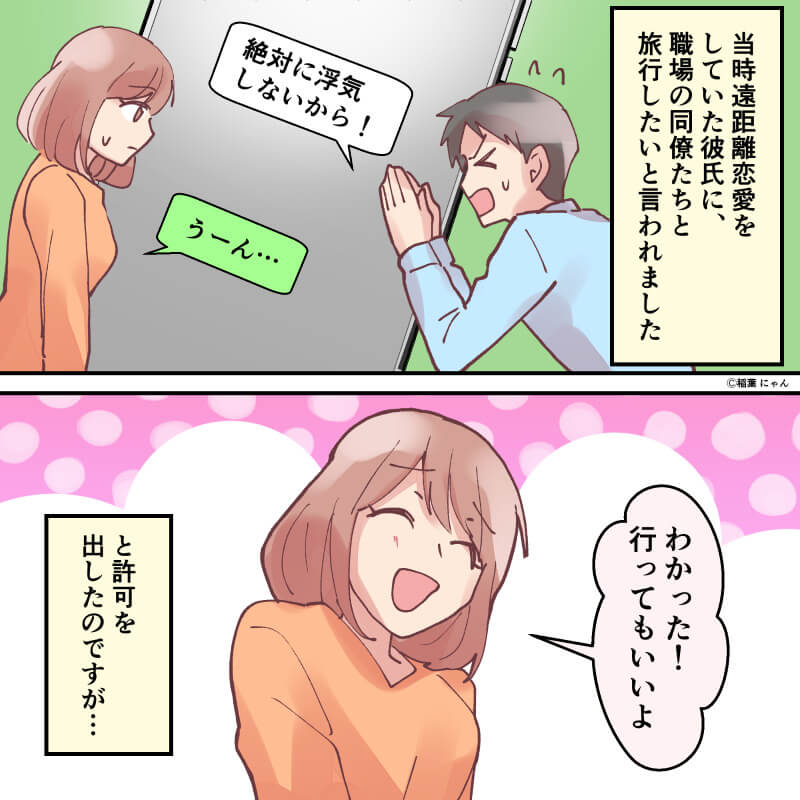 ある日、彼氏から「職場の同僚たちと旅行に行きたい」と言われたのです。