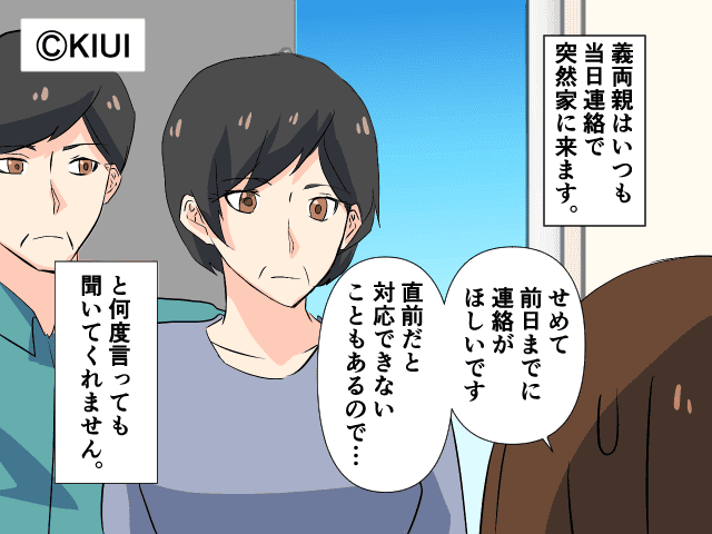 何度言ってもアポなし訪問をやめてくれない義両親。