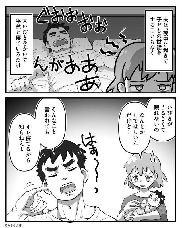夫は大いびきをかいて寝ているだけ