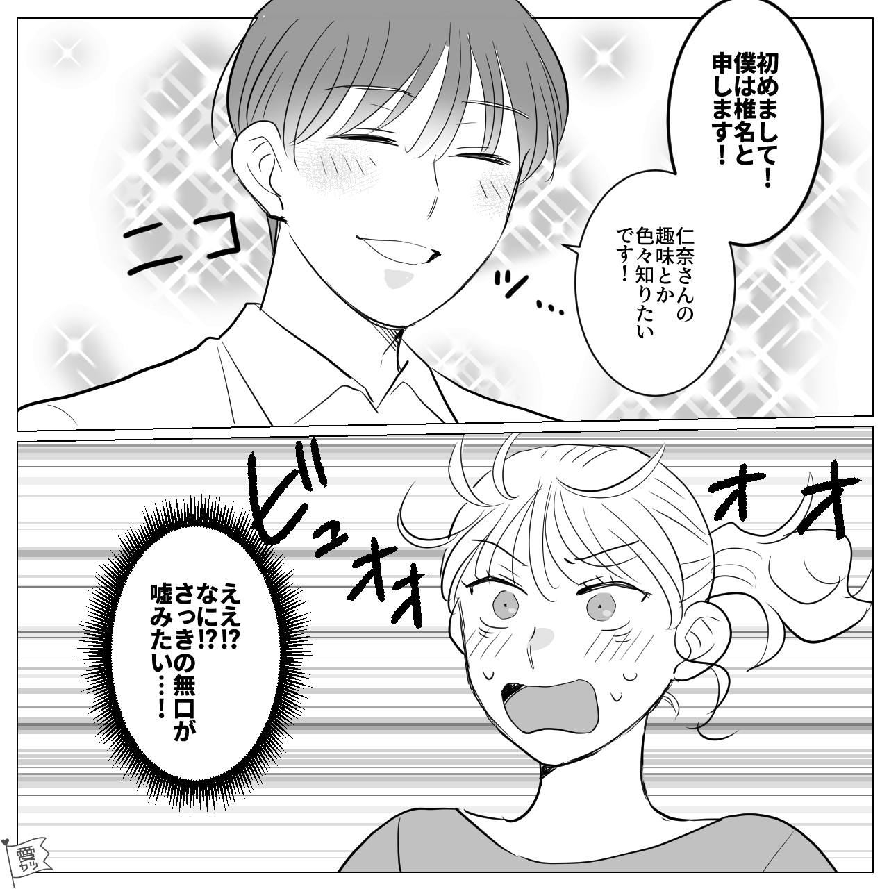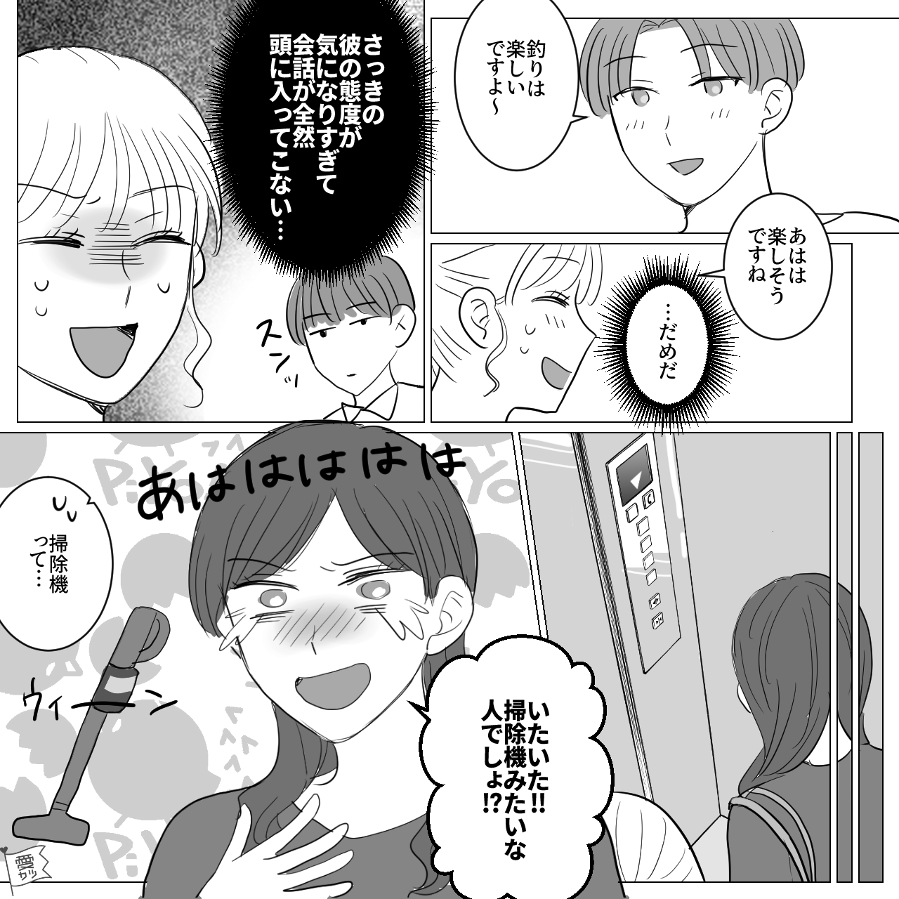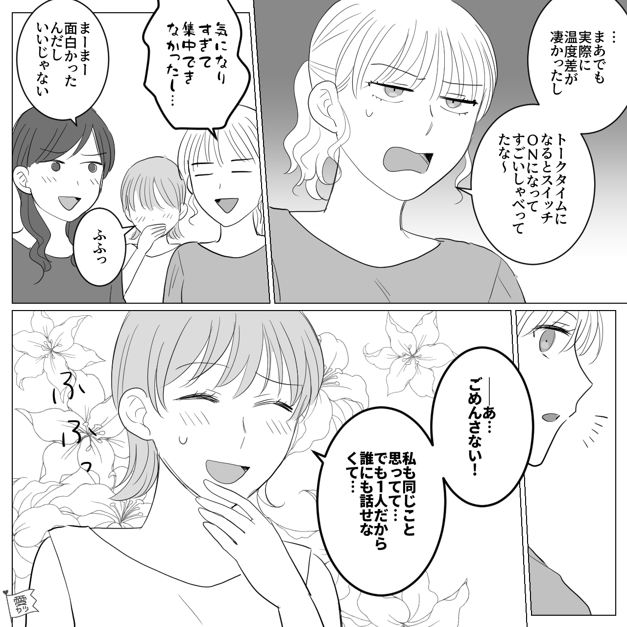 トークの高低差が激しい男性の態度に、思わず驚いてしまった主人公たち。
