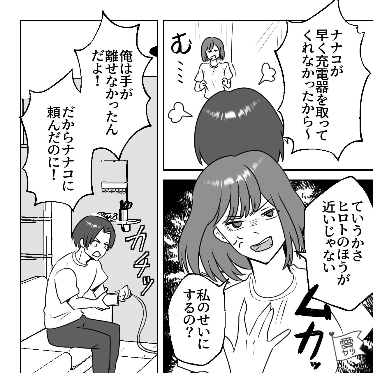 - 【漫画】夫「充電器取ってくれなかったから…」妻「私のせい!?」→次の瞬間、夫の口から飛び出した【自己中発言】で妻の胸が苦しい…!