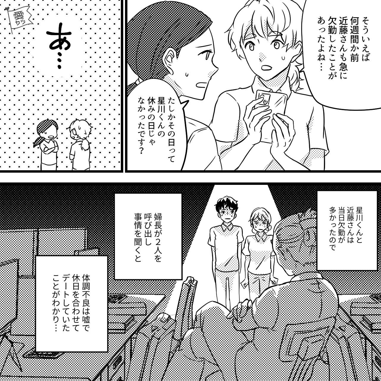 主人公の職場では、シフトや仕事に影響しないよう社内恋愛は禁止でした。