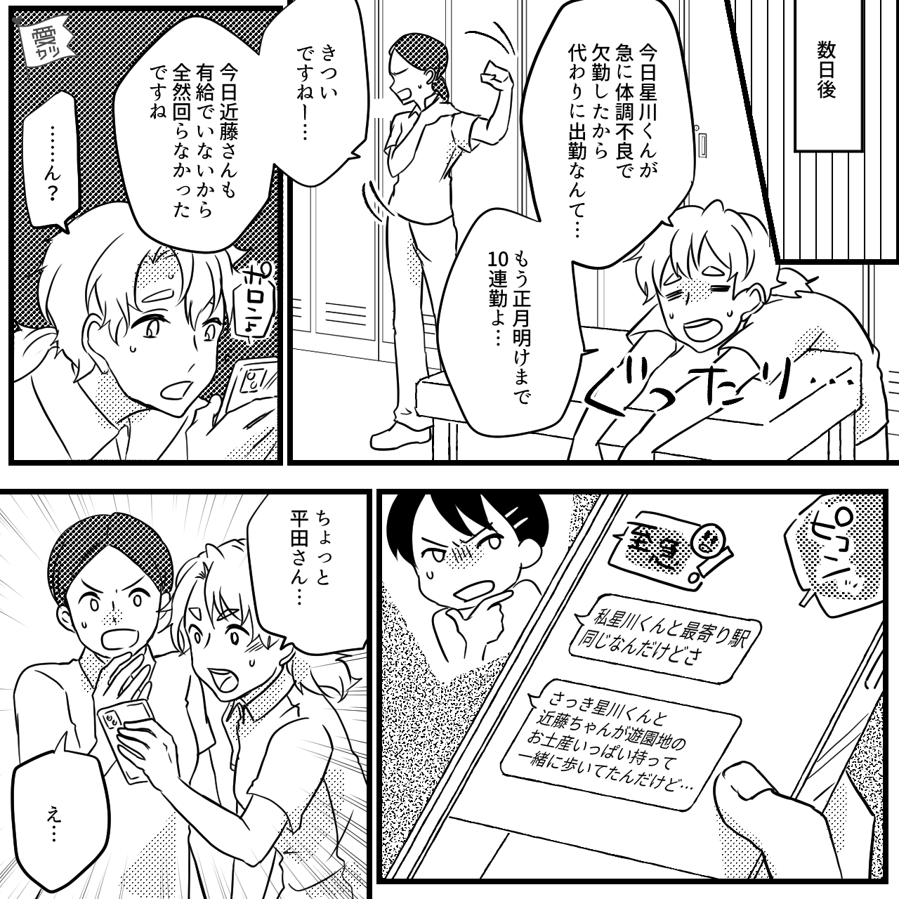 - 【漫画】『正月明けまで10連勤だよ…』体調不良続出?代わりに働く先輩看護師たち…⇒後日、後輩の【当日欠勤の理由】を知り愕然…!