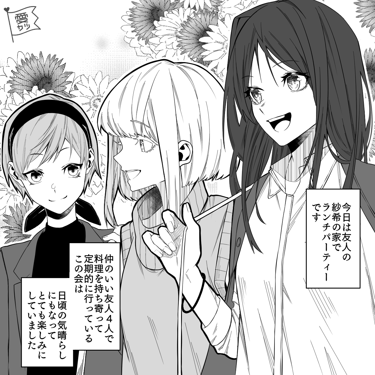 友人4人と、恒例のランチパーティーをすることになった主人公。