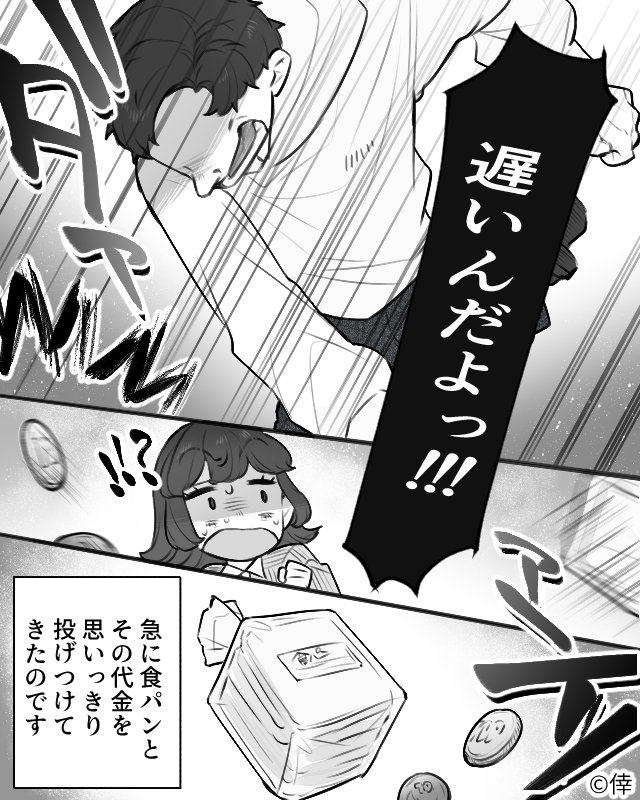イライラしていた男性に、商品とお金を投げつけられた主人公。