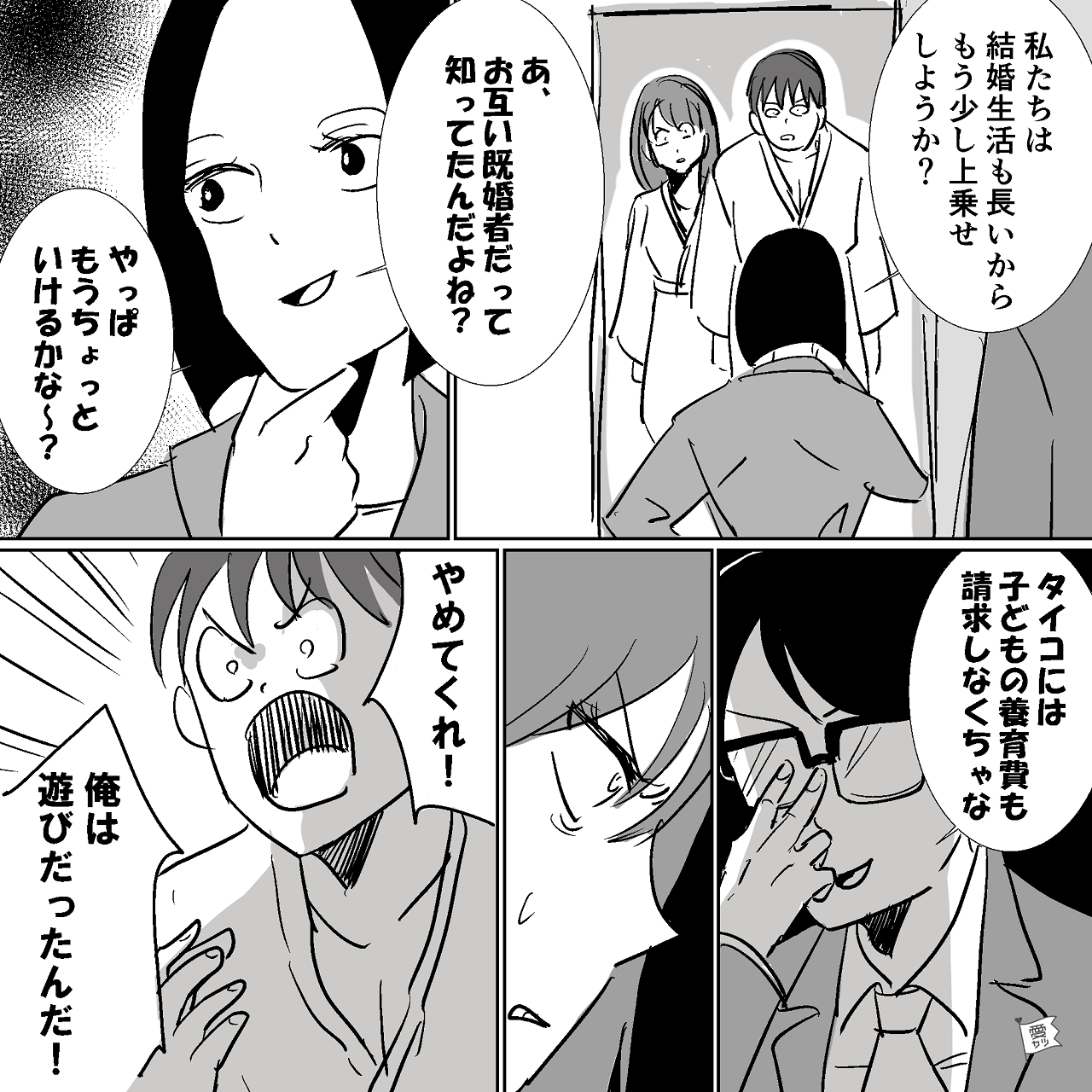 - ▶「しゃべってくれてありがとう♡」その後…主人公も夫の浮気相手の旦那も離婚成立。夫の“自業自得すぎる人生”に失笑…